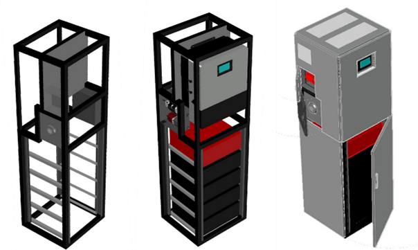 Las baterías con la electrónica propia, el aparellaje de seguridad eléctrica, el inversor y el punto de carga, se integran dentro del armario diseñado, constituyendo un producto compacto que cubre el almacenamiento, la carga de vehículos eléctricos y la conexión con la red en un espacio reducido. El equipo cuenta con una pantalla para visualizar el estado de servicio del equipo.