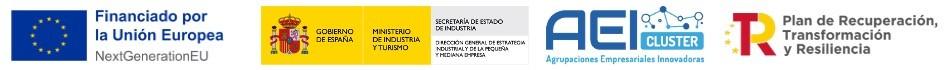 Este proyecto está cofinanciado por el Ministerio de Industria y Turismo a través de la línea de ayudas de apoyo a las Agrupaciones Empresariales Innovadoras, en su convocatoria del 2023 dentro del marco del Plan de Recuperación, Transformación y Resiliencia, con número de expediente AEI-010500-2023-343.